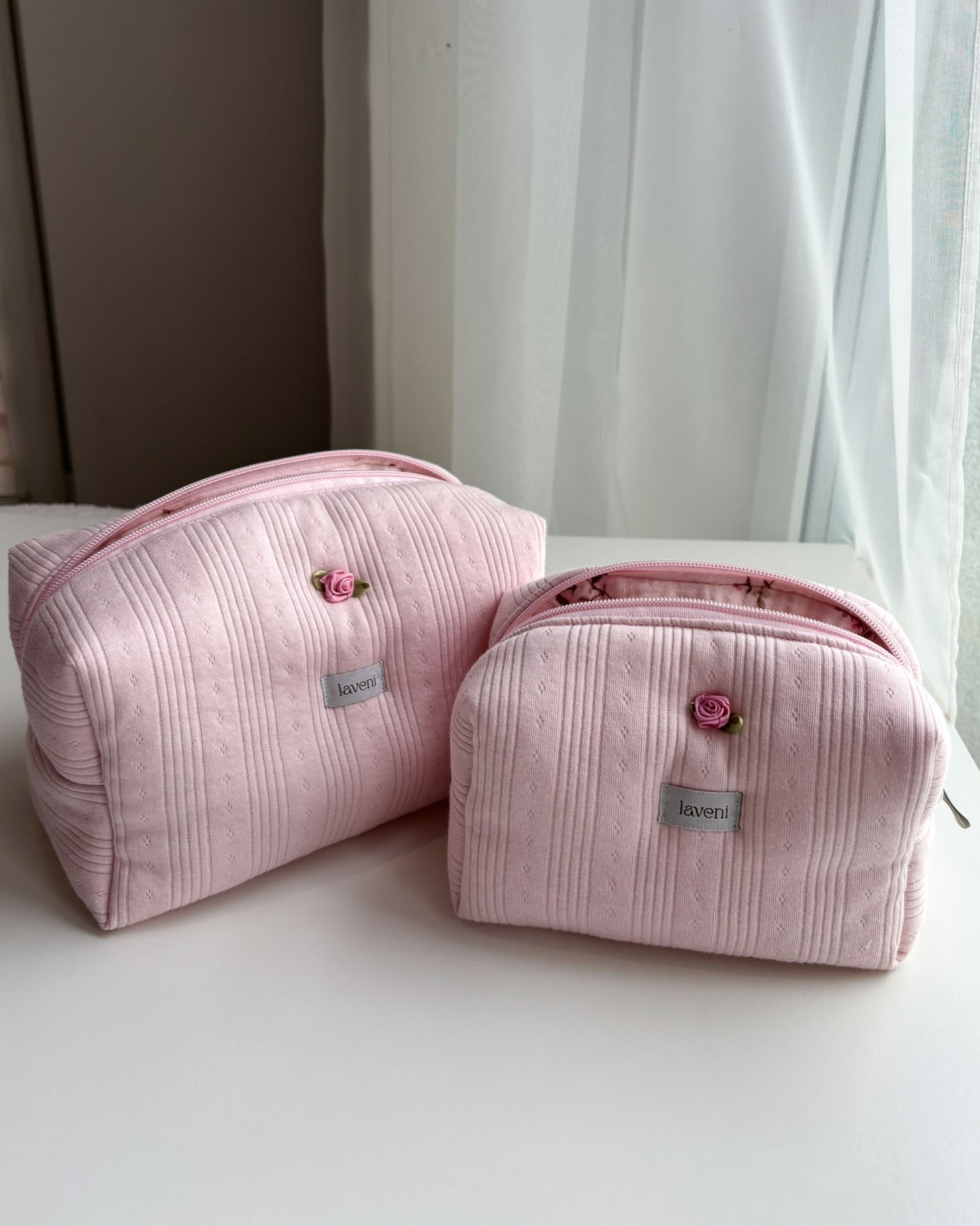 Dodaj odrobinę delikatności do swojej codzienności. Model Marshmallow to kosmetyczka pudrowy róż, która zachwyca fakturą i kolorem. Wykonana z bawełnianej dzianiny ażurowej (pointelle) w odcieniu subtelnego, „piankowego” różu, idealnie wpisuje się w estetykę coquette i styl romantyczny.