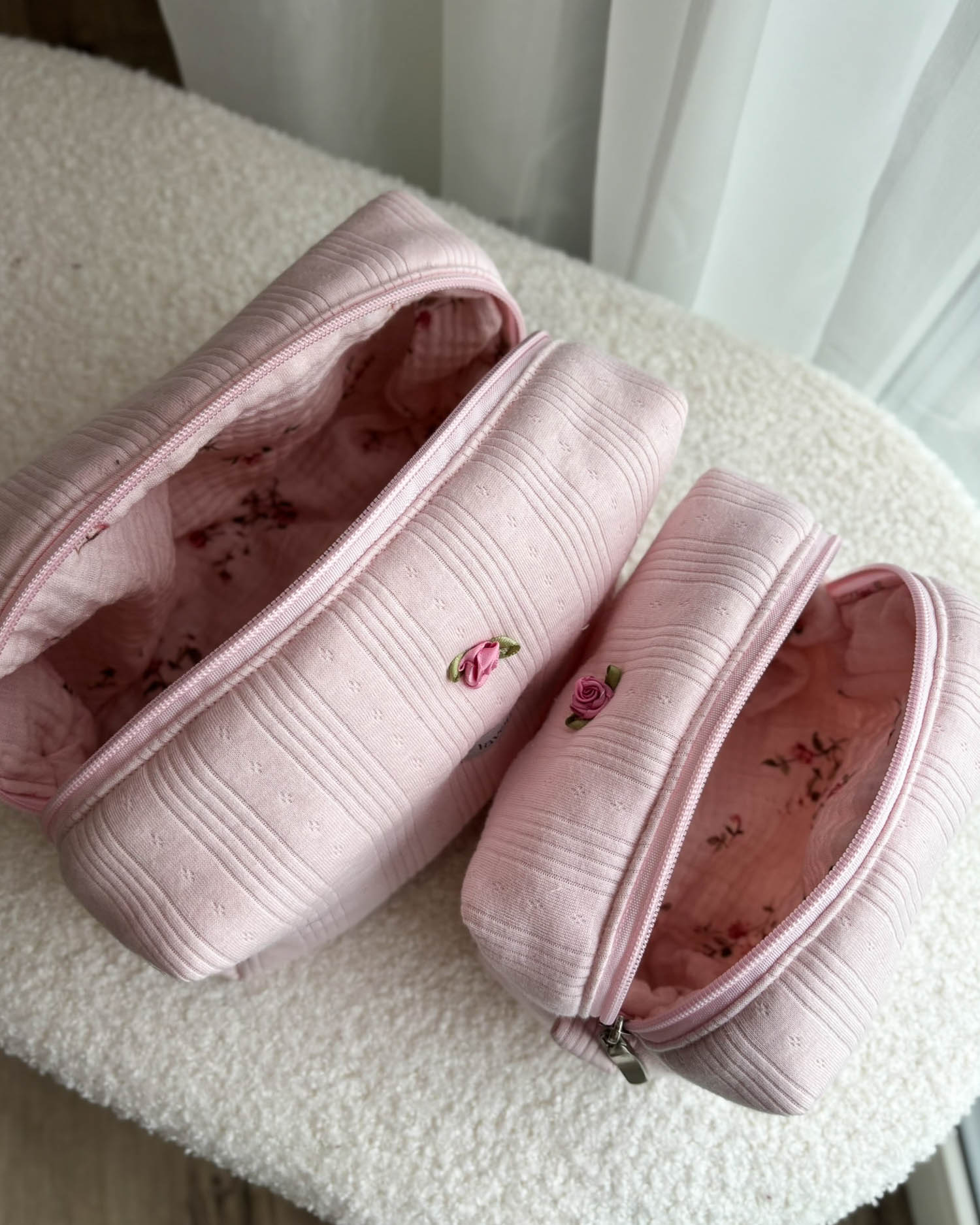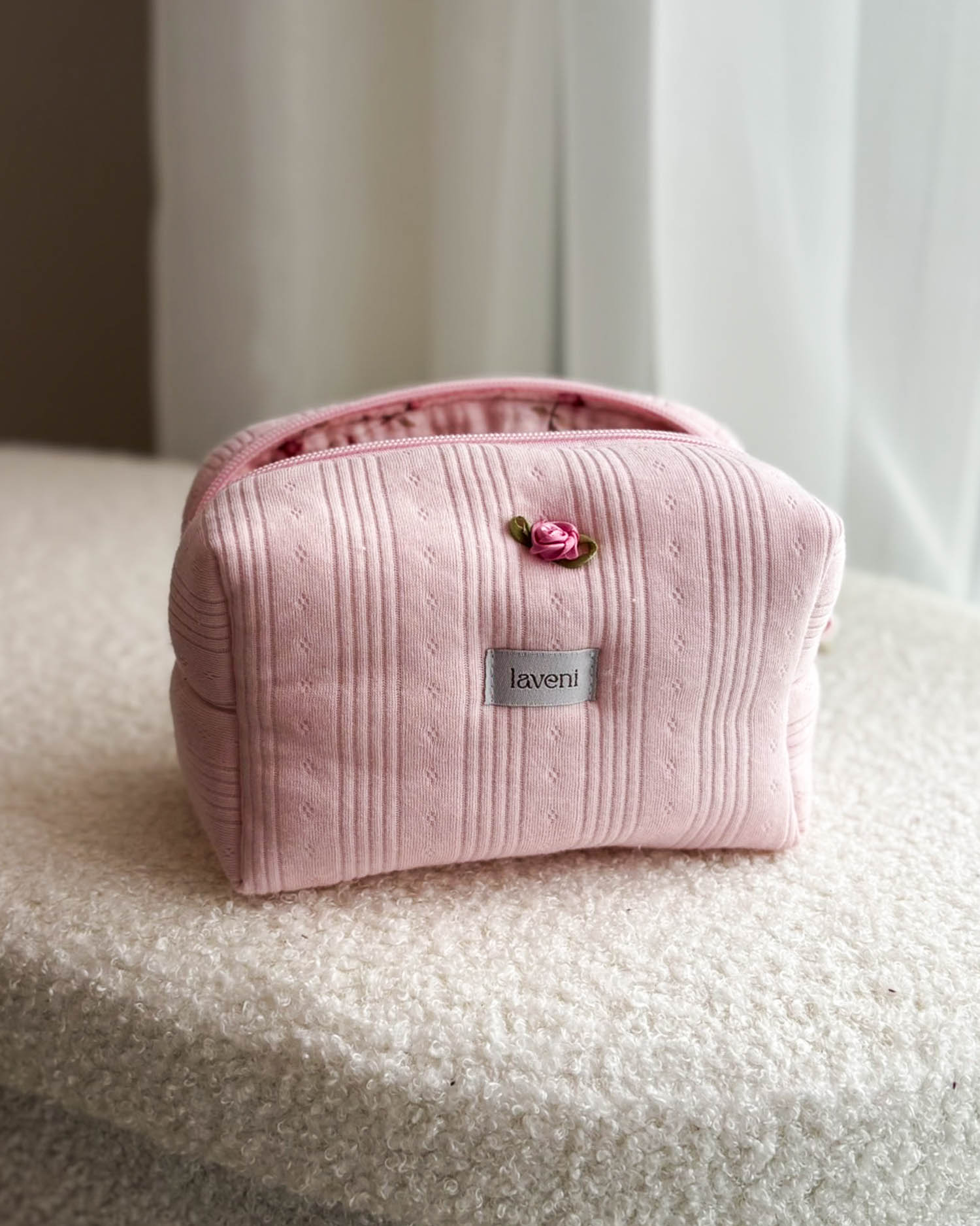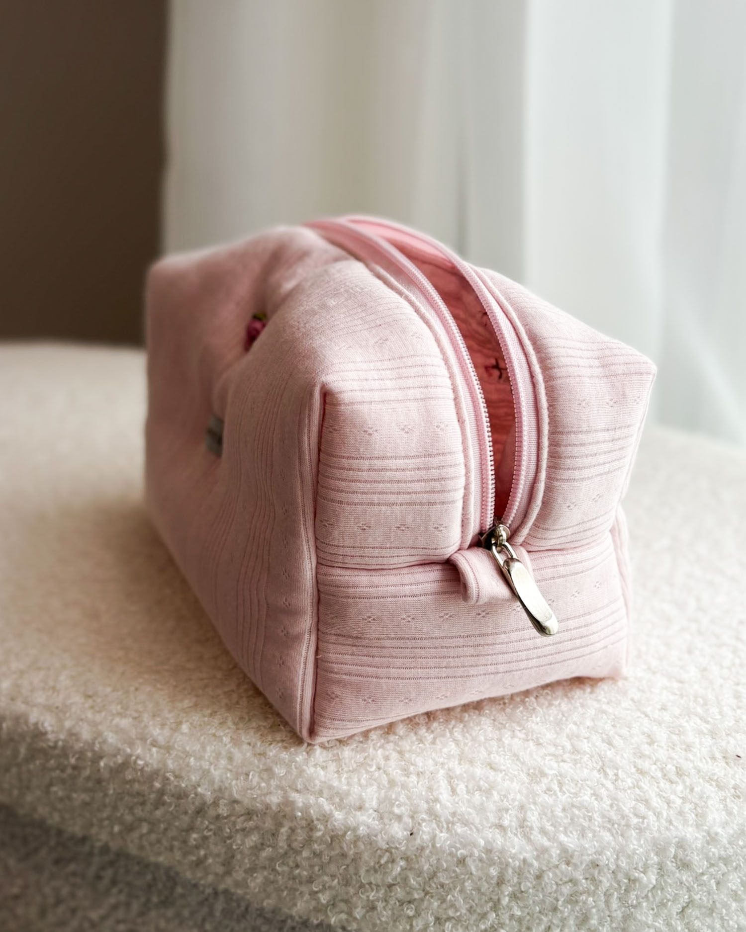 Kosmetyczka pudrowy róż Pointelle Marshmallow – pastelowa miłość