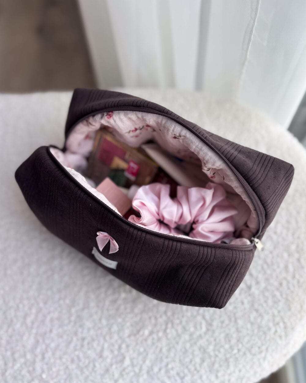 Ręcznie szyta kosmetyczka Espresso – Twój sposób na porządek